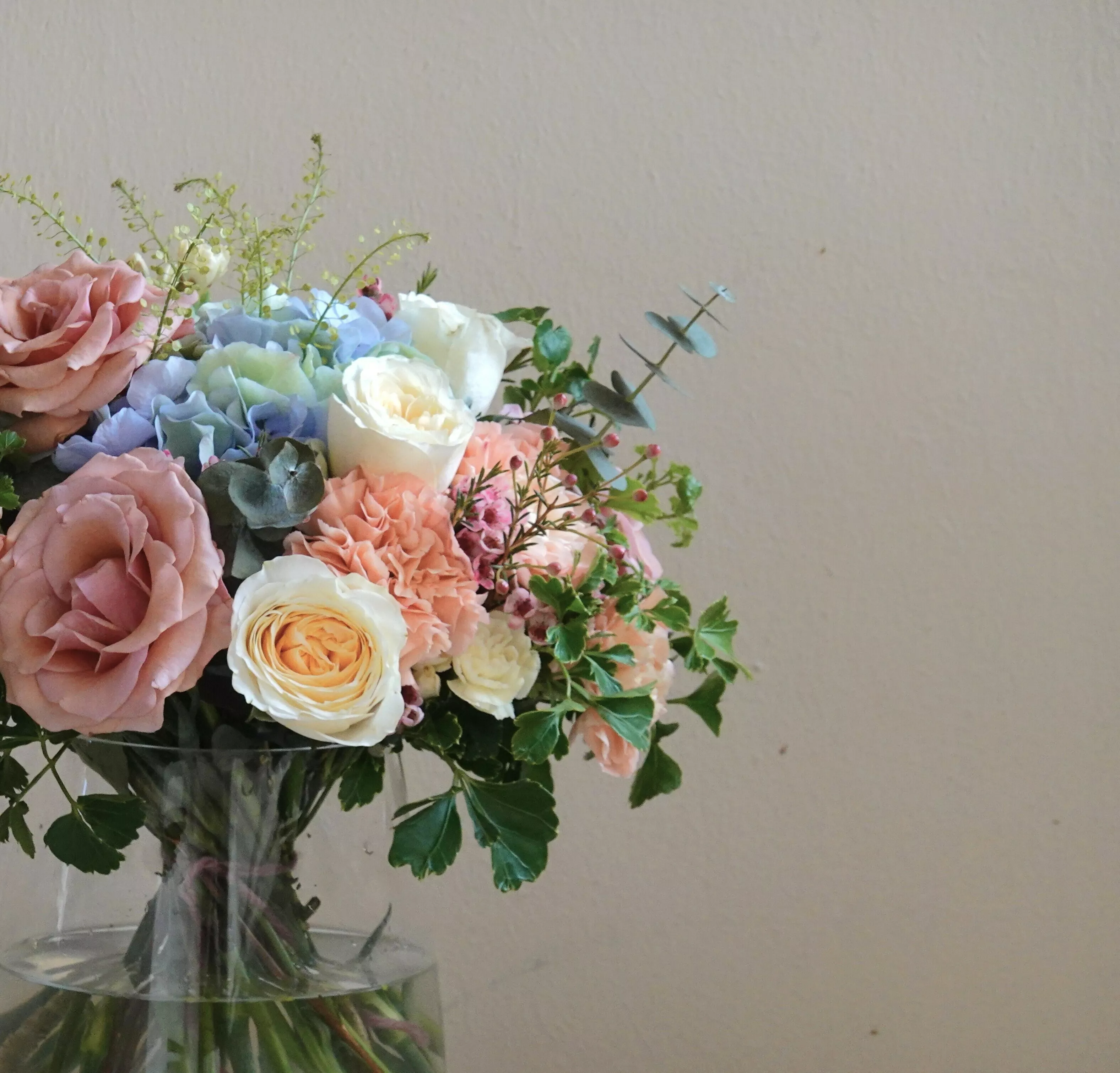 A joyful medley of bright pastel flowers, styled to feel freshly gathered from a garden.